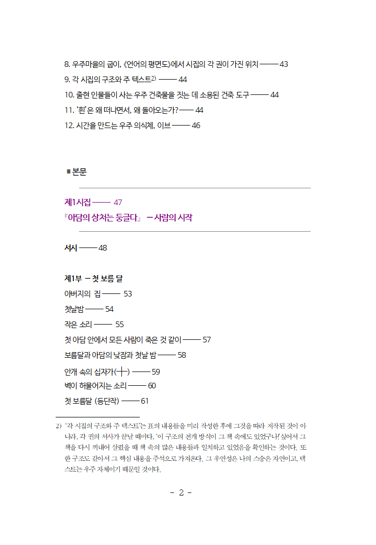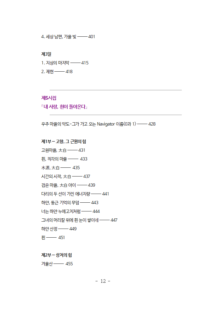 책『흰』은 언어, 시간, 의식, 존재, 우주의 본질과 구조를 시의 구조로 해석한 형이상학적 시전집이다. 시인은 감정의 서술을 넘어, 시를 통해 존재의 원리와 우주구조를 탐구한다. 이 시집은 겉은 과학이며 속은 감성으로 이루어진 존재론적 사유를 기반으로한 ‘우주적 서사시’이며, 시인이 50여 년간 준비한 인생작이자 언어실험의 결정체이다.